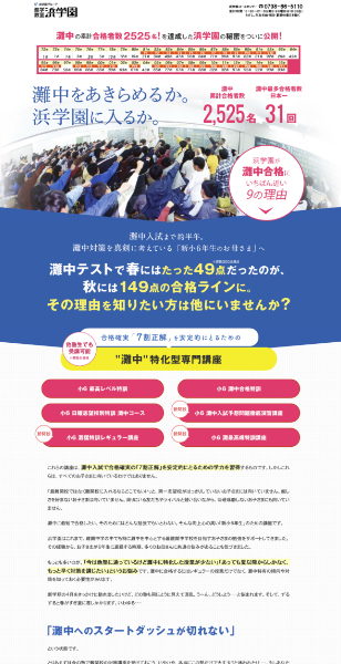 最難関の灘中コースへ誘導するためのランディングページです。